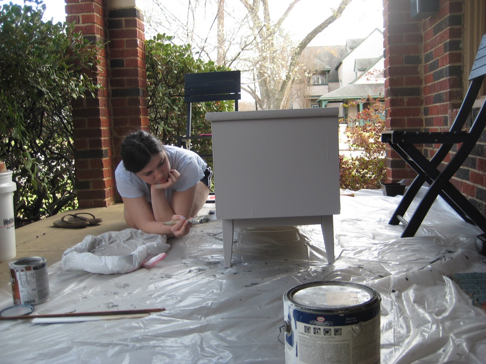With limited storage in our very old duplex (I mean did ladies not have clothes back then??) we welcomed the opportunity to store our winter sweaters and warm clothes in something cute! The entire thing only took 1 beautiful Saturday afternoon. We did it the Saturday of the St. Patty's parade on Lower Greenville and could hear the craziness from our front porch. I find it hilarious to think if someone had told me I would prefer to stay home and re-finish furniture rather than partake in the Greenville Ave fesitivities- I would have called you CRAZY! Times have changed. My dad told me he prefers the domestic Abby :) He worries less these days.